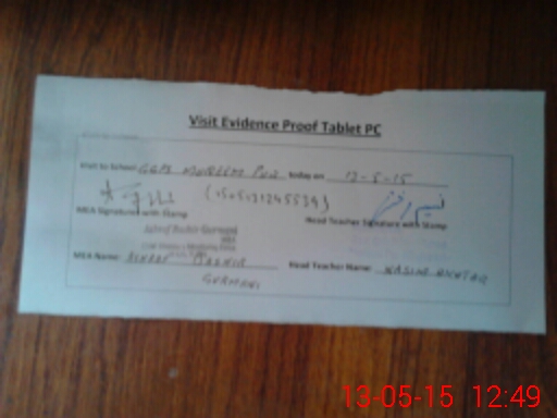 | Attendance Register | Head Teacher | MEA with School | Visit Proof |