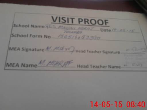 | Attendance Register | Head Teacher | MEA with School | Visit Proof |