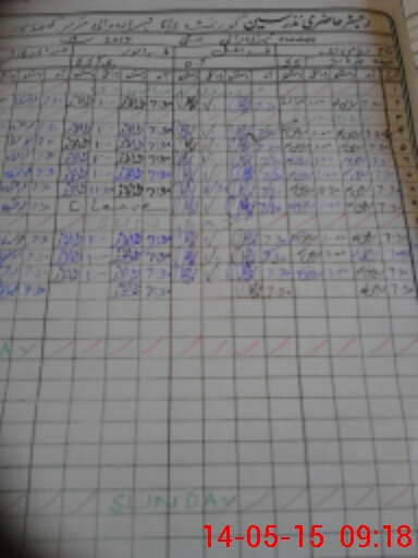 | CNIC | Full Name | Designation | R/C | Absence During Last Calender Month |