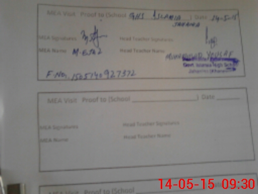 | Certified that this School was Inspected by the Undersigned MEA/DMO Today and the Information Stated Above is as Per Record. | |||||