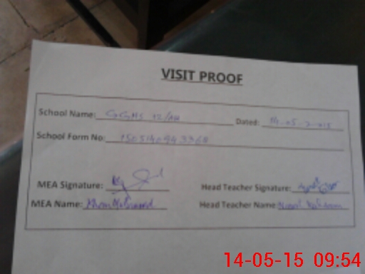 | Attendance Register | Head Teacher | MEA with School | Visit Proof |