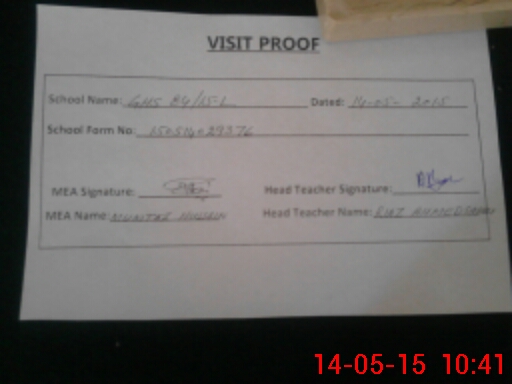 | Attendance Register | Head Teacher | MEA with School | Visit Proof |