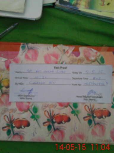 | Monitoring Date: 14-05-2015 | Start Time: 14-05-2015 10:28 AM | End Time: 14-05-2015 11:04 AM | Name of MEA: Ch**** Di**** | |