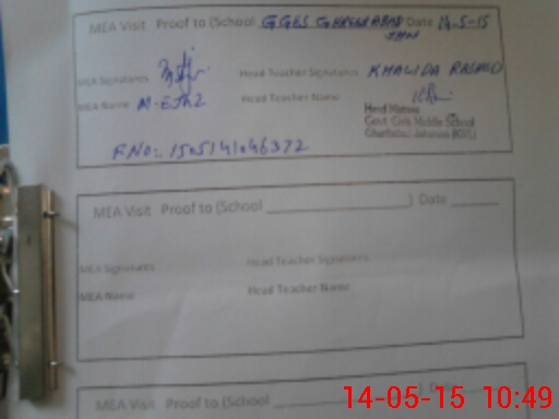 | Attendance Register | Head Teacher | MEA with School | Visit Proof |