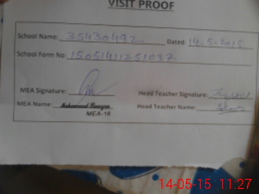 | Attendance Register | Head Teacher | MEA with School | Visit Proof |