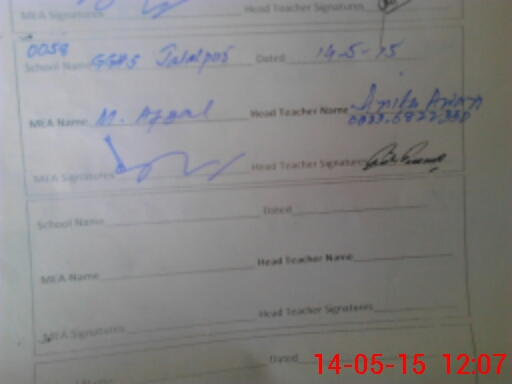 | Attendance Register | Head Teacher | MEA with School | Visit Proof |