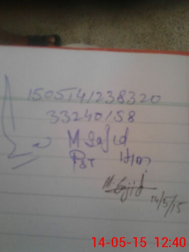 | Name: MU**** SA**** Designation: (School Headmaster's/Headmistress's) PST Phone/Cell Number: 03**** |