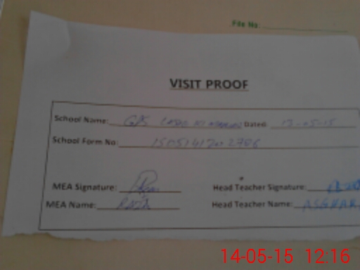 | Attendance Register | Head Teacher | MEA with School | Visit Proof |
