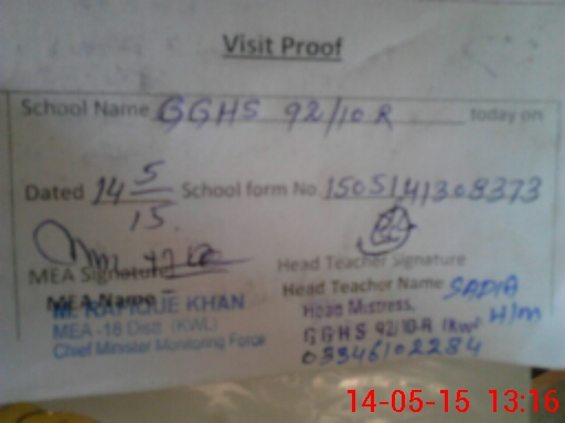 | EMIS Code: 36420047 | Name of School: GGHS 92/10-R, KHANEWAL | |||