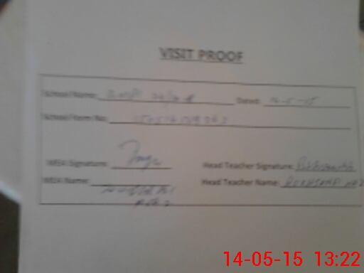 | Attendance Register | Head Teacher | MEA with School | Visit Proof |