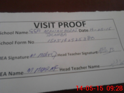 | Attendance Register | Head Teacher | MEA with School | Visit Proof |