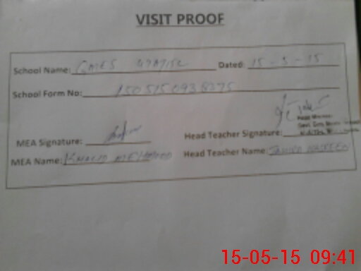 | Attendance Register | Head Teacher | MEA with School | Visit Proof |