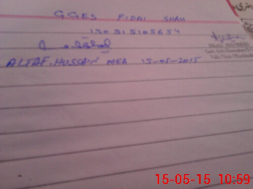 | Monitoring Date: 15-05-2015 | Start Time: 15-05-2015 09:55 AM | End Time: 15-05-2015 11:01 AM | Name of MEA: Al**** Hu**** BN**** | |