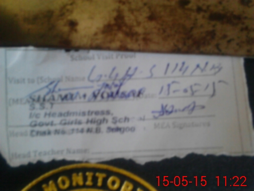 | School Visited by School Health & Nutrition Supervisor (No. of Visits) | 1 | Name1: | CH IBRAR HASSAN | Name2: | |