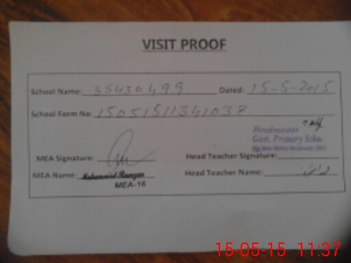 | Attendance Register | Head Teacher | MEA with School | Visit Proof |