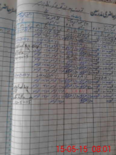 | CNIC | Full Name | Designation | R/C | Absence During Last Calender Month |