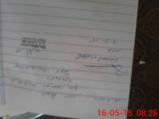 | Monitoring Date: 16-05-2015 | Start Time: 16-05-2015 07:44 AM | End Time: 16-05-2015 08:30 AM | Name of MEA: Za**** BN**** | |