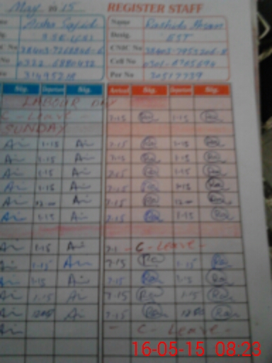 | CNIC | Full Name | Designation | R/C | Absence During Last Calender Month |