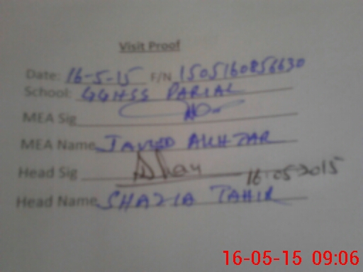 | Attendance Register | Head Teacher | MEA with School | Visit Proof |