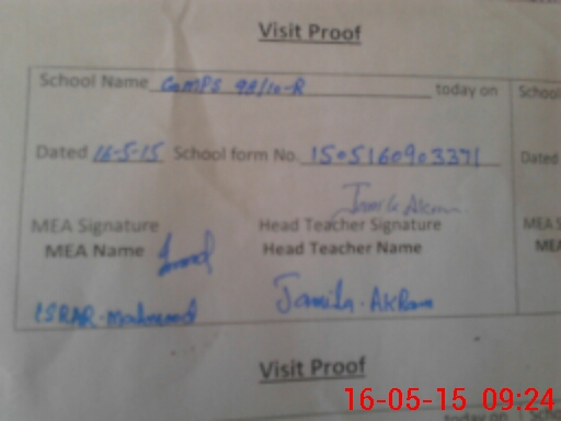 | Certified that this School was Inspected by the Undersigned MEA/DMO Today and the Information Stated Above is as Per Record. | |||||