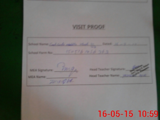 | Attendance Register | Head Teacher | MEA with School | Visit Proof |