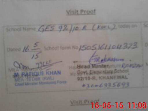 | EMIS Code: 36420187 | Name of School: GES 92/10-R, P/O 93/10-R, KHANEWAL | |||