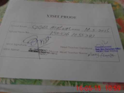 | Attendance Register | Head Teacher | MEA with School | Visit Proof |
