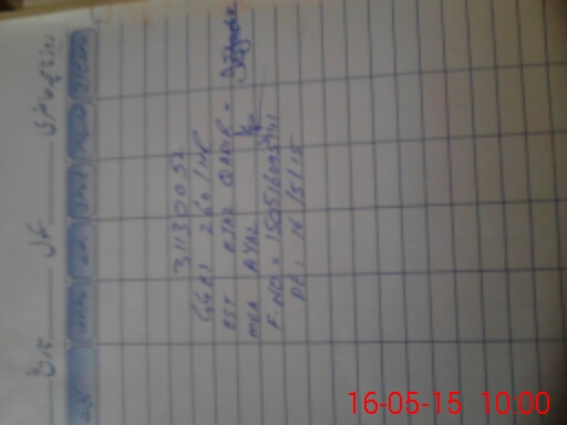 | Monitoring Date: 16-05-2015 | Start Time: 16-05-2015 09:33 AM | End Time: 16-05-2015 10:00 AM | Name of MEA: Ay**** Me**** BN**** 13 | |