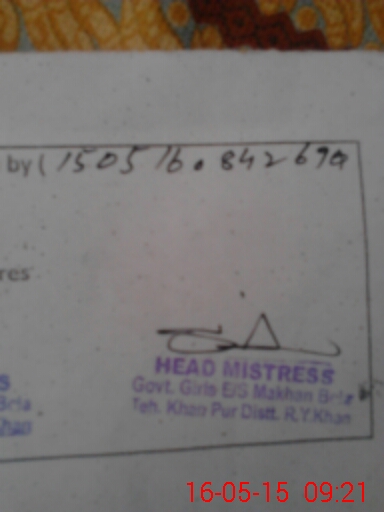 | District: RAHIMYAR KHAN | Tehsil: KHANPUR | Markaz: JHORAN-FEMALE | Level: Middle | |
