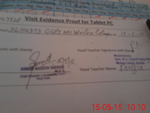 | EMIS Code: 36110373 | Name of School: GGPS MC WRITERS COLONY MULTAN | |||