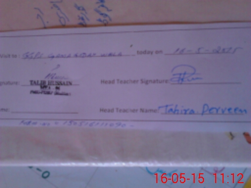 | Name: Uz**** Bi**** Designation: (School Headmaster's/Headmistress's) PST Phone/Cell Number: 03**** |