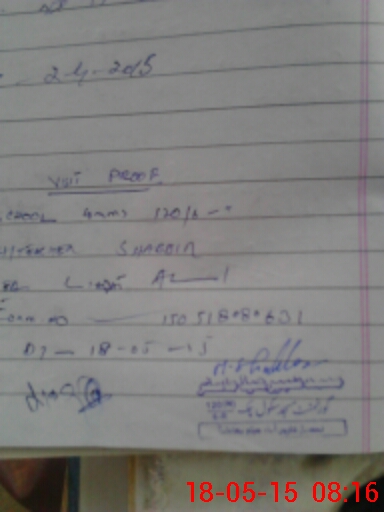 | Monitoring Date: 18-05-2015 | Start Time: 18-05-2015 08:00 AM | End Time: 18-05-2015 08:16 AM | Name of MEA: Li**** Al**** BN**** 11 | |