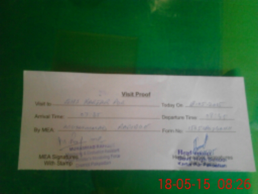 | Monitoring Date: 18-05-2015 | Start Time: 18-05-2015 07:40 AM | End Time: 18-05-2015 08:29 AM | Name of MEA: Mu**** Ra**** | |