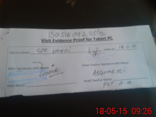 | Attendance Register | Head Teacher | MEA with School | Visit Proof |