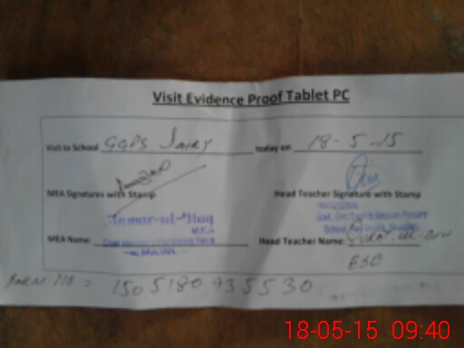 | Attendance Register | Head Teacher | MEA with School | Visit Proof |