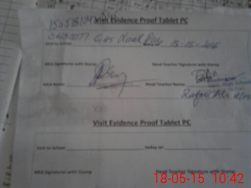 | Attendance Register | Head Teacher | MEA with School | Visit Proof |