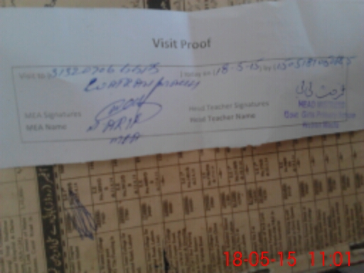 | Attendance Register | Head Teacher | MEA with School | Visit Proof |