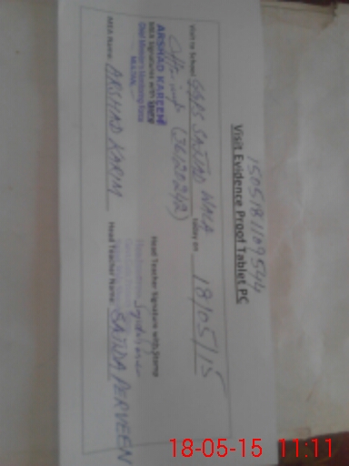 | School Visited by School Health & Nutrition Supervisor (No. of Visits) | Name1: | Sajid Hafeez | Name2: | ||