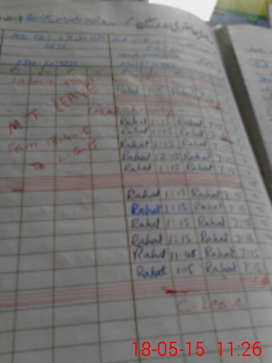 | Monitoring Date: 18-05-2015 | Start Time: 18-05-2015 10:39 AM | End Time: 18-05-2015 11:28 AM | Name of MEA: AH**** NA**** (r**** | |