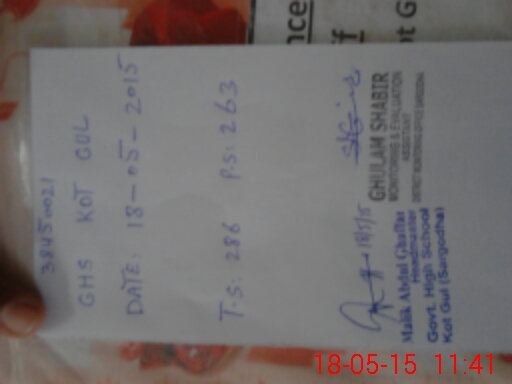 | EMIS Code: 38450021 | Name of School: GHS KOT GUL | |||