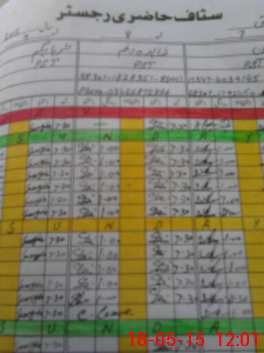 | CNIC | Full Name | Designation | R/C | Absence During Last Calender Month |