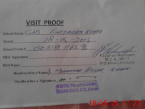 | EMIS Code: 37220013 | Name of School: GHS RGAK PIND DADAN KHAN | |||