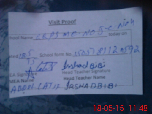 | Attendance Register | Head Teacher | MEA with School | Visit Proof |