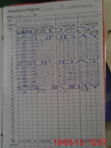 | CNIC | Full Name | Designation | R/C | Absence During Last Calender Month |