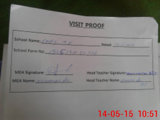 | Attendance Register | Head Teacher | MEA with School | Visit Proof |