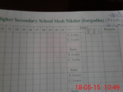 | CNIC | Full Name | Designation | R/C | Absence During Last Calender Month |
