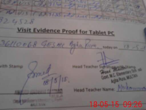 | Attendance Register | Head Teacher | MEA with School | Visit Proof |