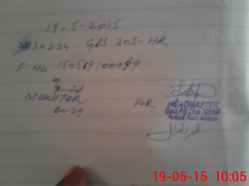 | Name: TA**** MU**** Designation: (School Headmaster's/Headmistress's) PTC/JV Phone/Cell Number: 03**** |