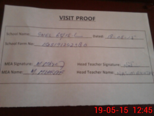 | Attendance Register | Head Teacher | MEA with School | Visit Proof |