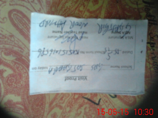 | School Visited by School Health & Nutrition Supervisor (No. of Visits) | 1 | Name1: | Farhat Jabeen | Name2: | |